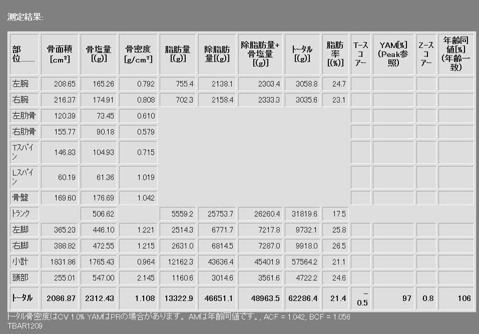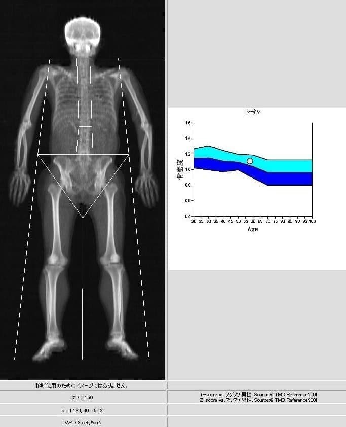 測定部位は、骨折が起こりやすい腰椎、大腿骨頸部、前腕骨です。