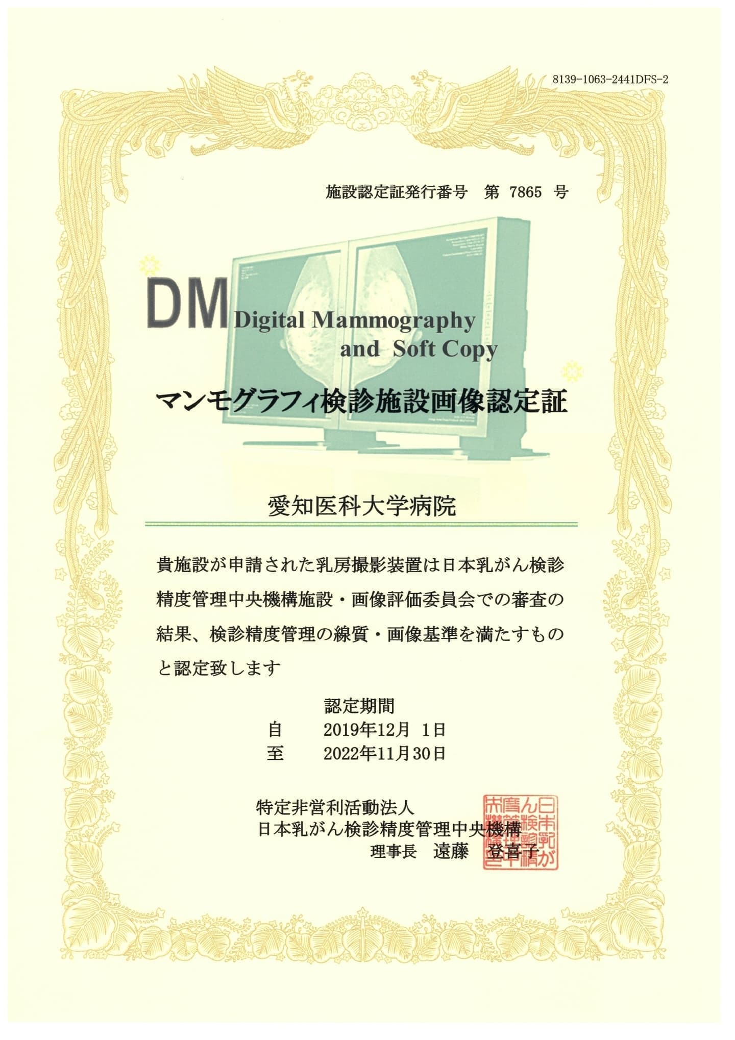 当院はマンモグラフィ検診施設・画像認定を取得しています。