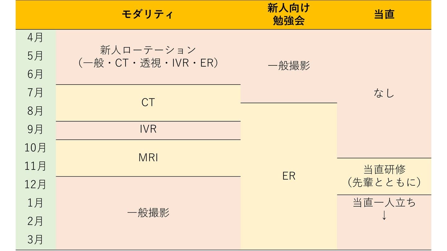 ここからは人や入職した年によって異なりますが、私の場合は7・8月をCT、9月はIVR、10・11月はMRI、12月から3月までが一般撮影と月単位で回ります。